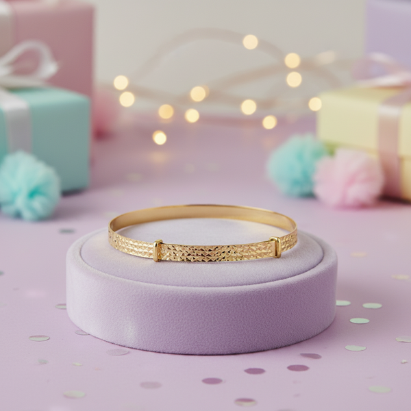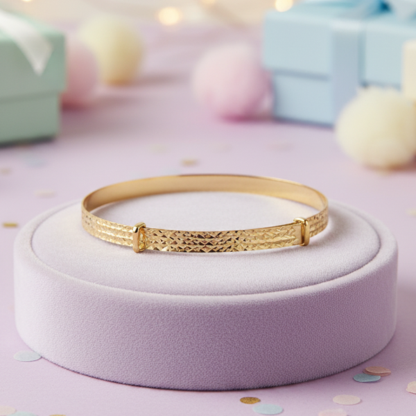 Diamond cut expandable baby bangle in 9ct Yellow Gold.