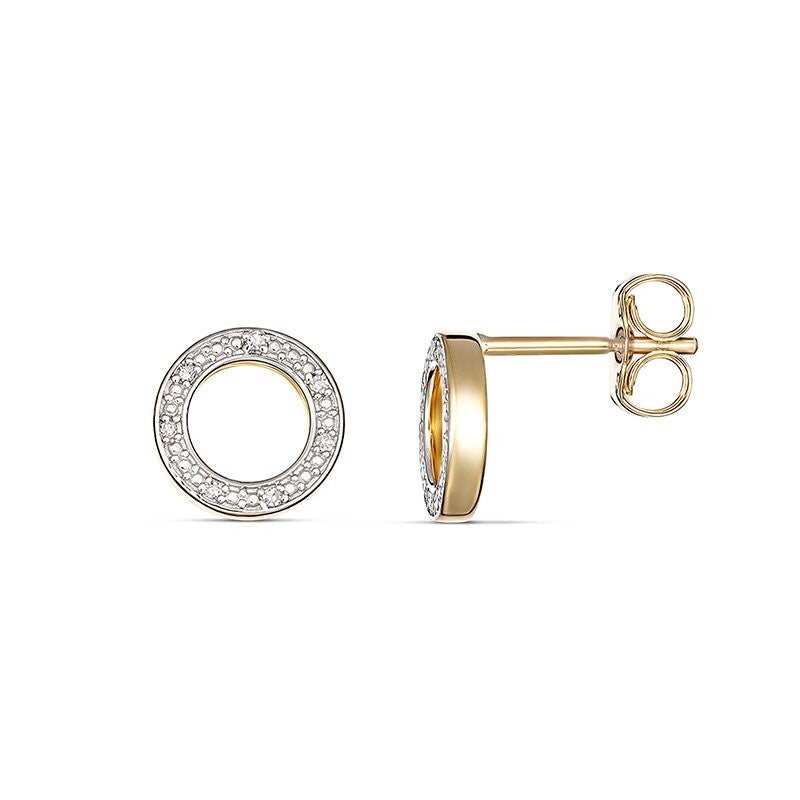 Open Circle Diamond Stud Earrings in 9ct gold.