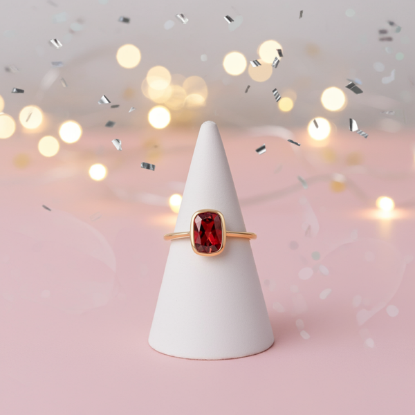 Paterson Ladies Brand Rectangle Shaped Garnet Ring in 9ct Gold.