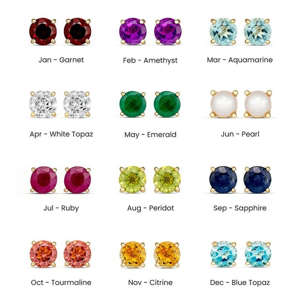 Paterson Ladies Birthstone Earrings January to December in 9ct Yellow Gold and Precious Gems