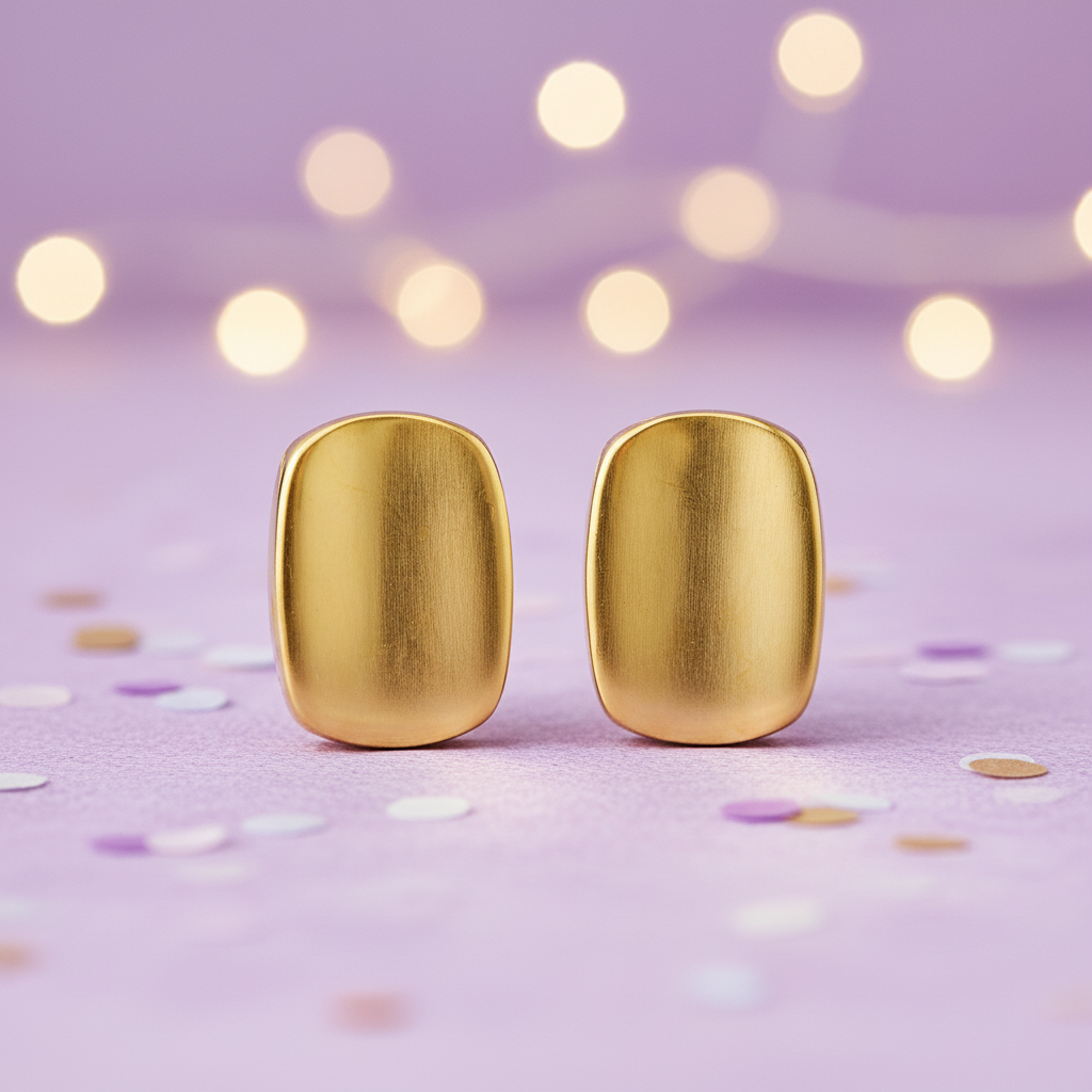 Seren Stainless Steel Waterproof 18K Gold Plated Rectangle Stud Earrings