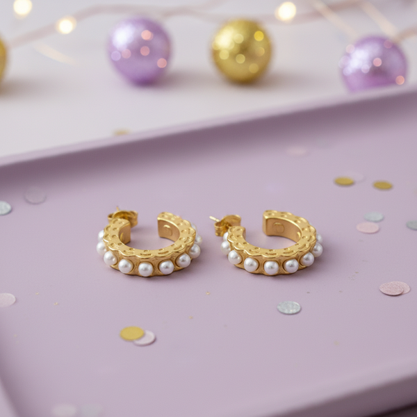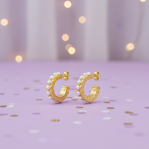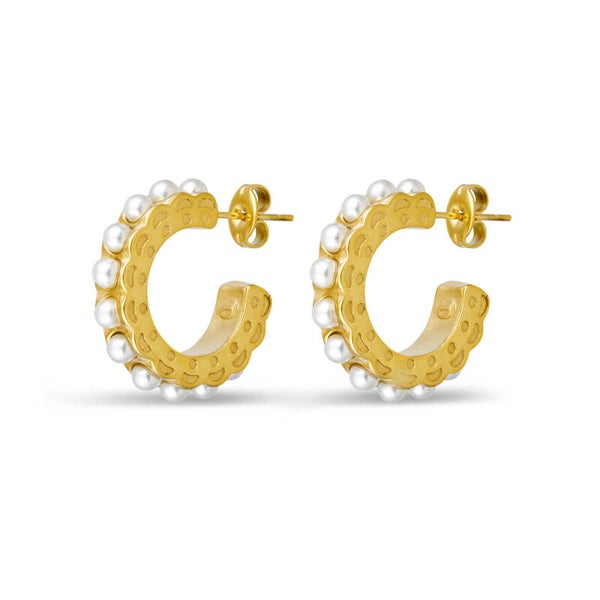 Seren Stainless Steel Waterproof 18K Gold Plated Inset Pearl Hoop Earrings