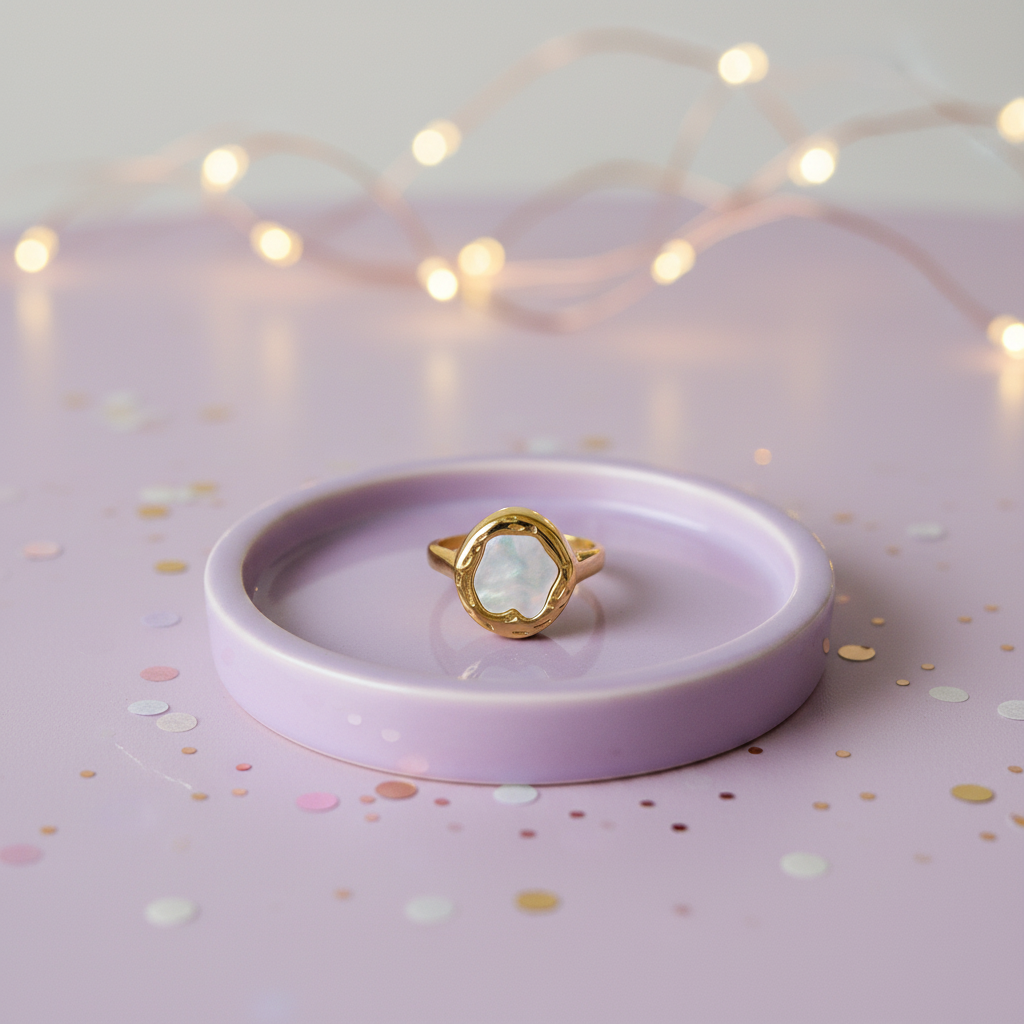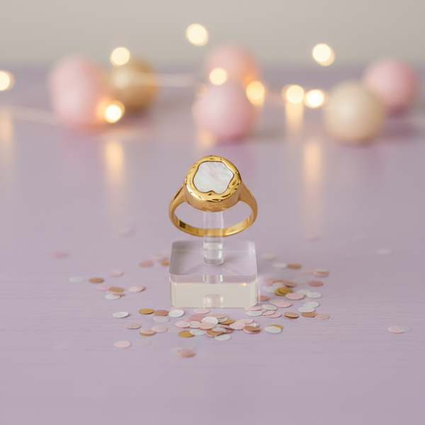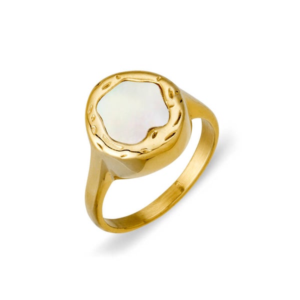 Seren Stainless Steel Waterproof 18K Gold Plated Paua Shell Molten Ring