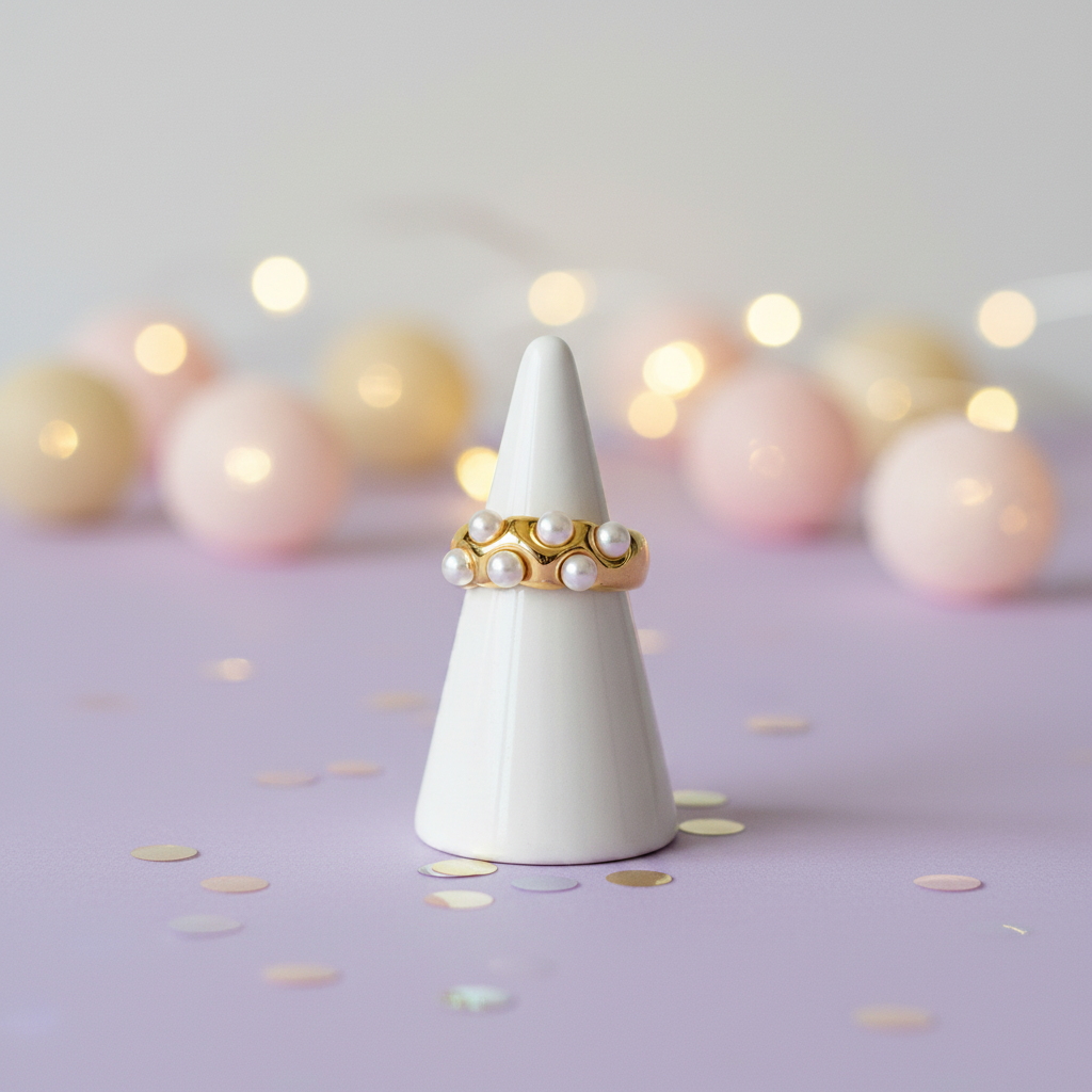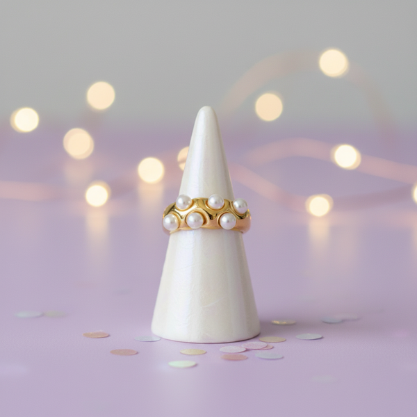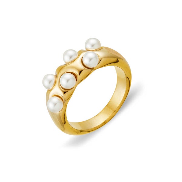 Seren Stainless Steel Waterproof 18K Gold Pearl Inlay Ring