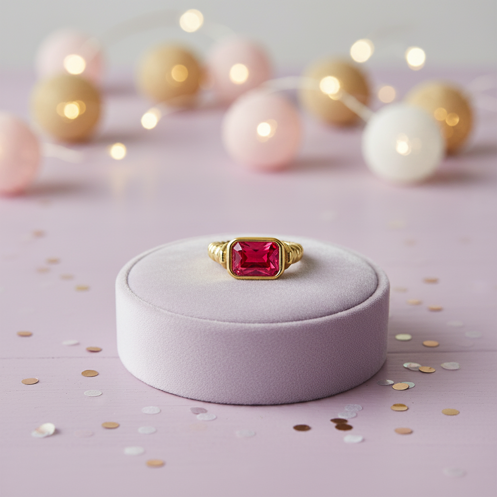Seren Stainless Steel Waterproof 18K Gold Plated Twist Ring With Bezel Set Cubic Zirconia in Red Green or White