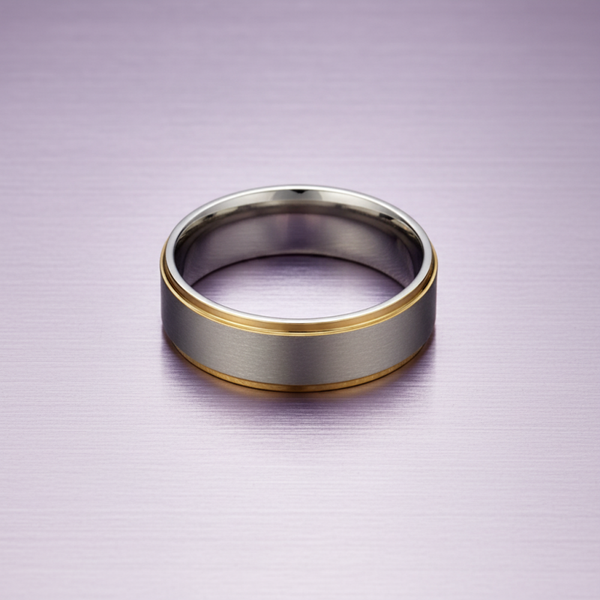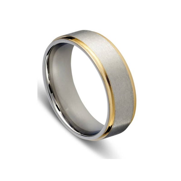 Blaze Brand Stainless Steel Matte Brushed Ring with Gold Edging
