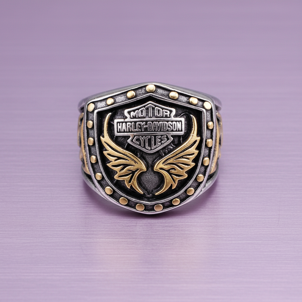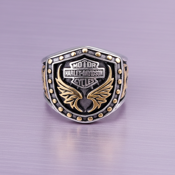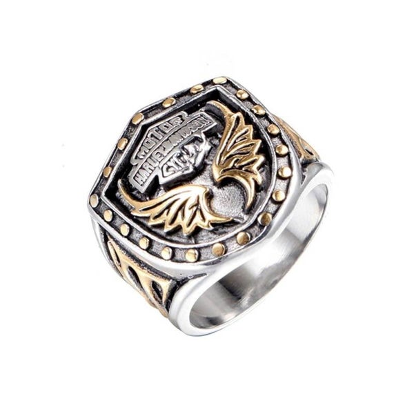 Blaze Stainless Steel Gold Detail Motorcycle Shield Ring