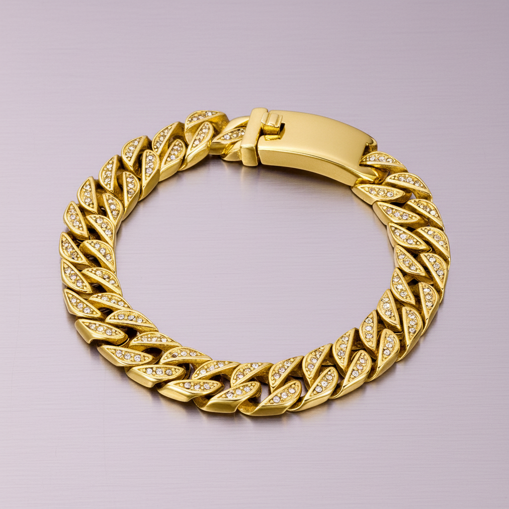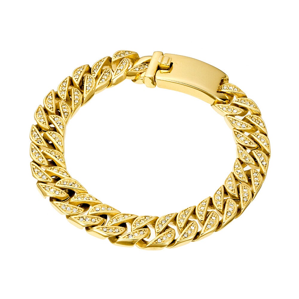 Blaze Stainless Steel 12MM Gold Plated Cuban CZ Set Bracelet