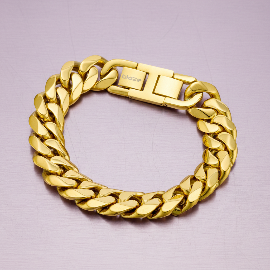 Blaze Stainless Steel 16MM 18k Gold PVD Plated Cuban CZ Set Bracelet