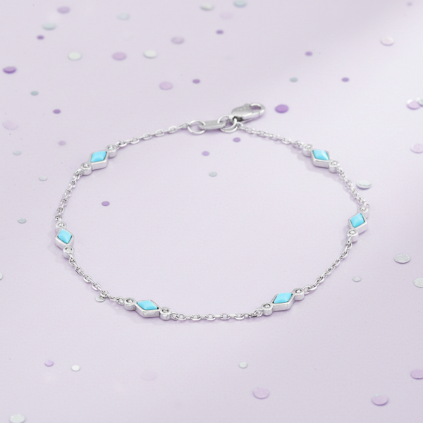 Silver Essentials Enamel Turquoise and CZ Bracelet Sterling Silver or 14K Gold Plated