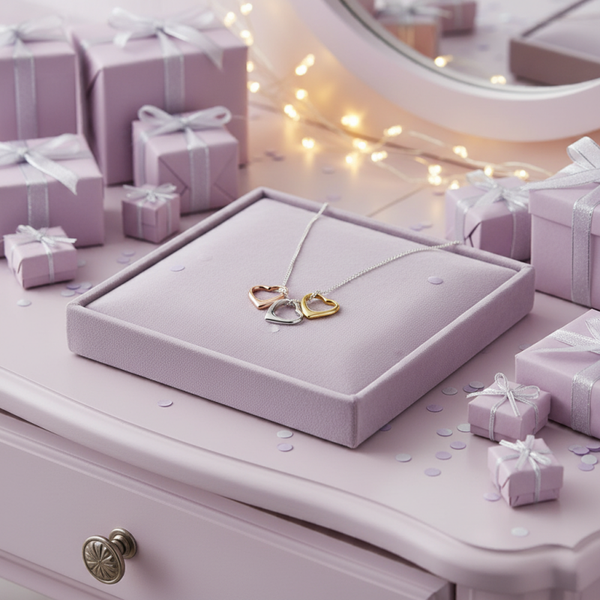 Silver Essentials Sterling Silver Floating Hearts Necklace 50CM