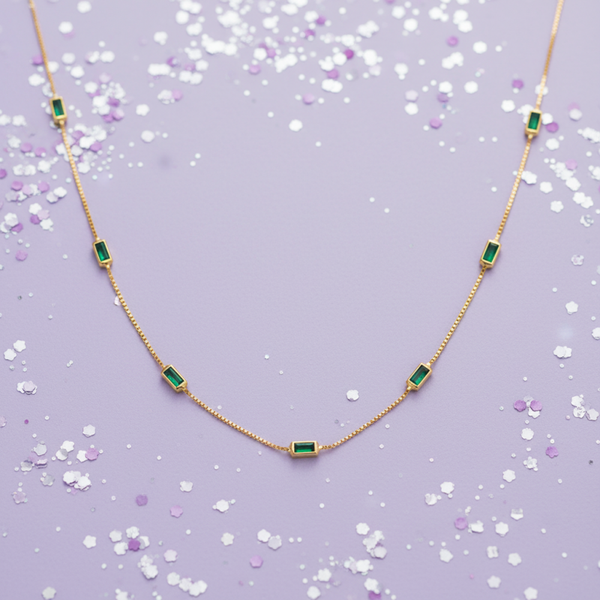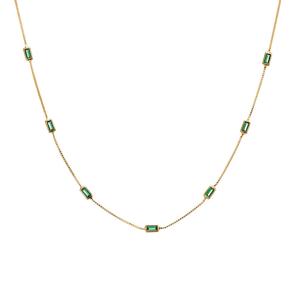 Silver Essentials Sterling Silver Gold Plated Fine Box Chain With Green Baguette CZ 45CM