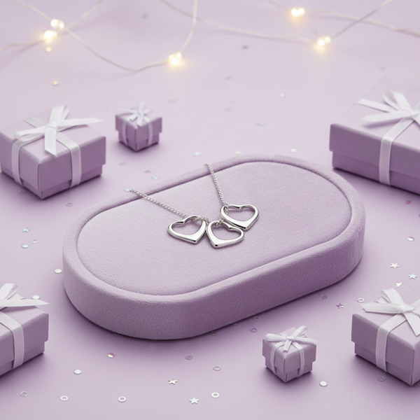 Silver Essentials Sterling Silver Floating Hearts Necklace 50CM