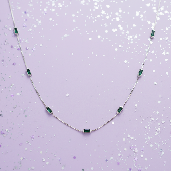 Silver Essentials Sterling Silver Fine Box Chain With Green Baguette CZ 45CM