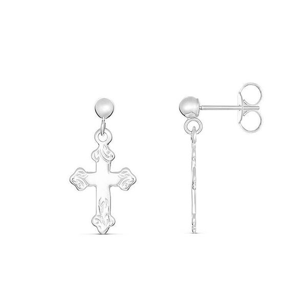 My Little Angel Cross Stud Drop Earrings in 9ct Gold