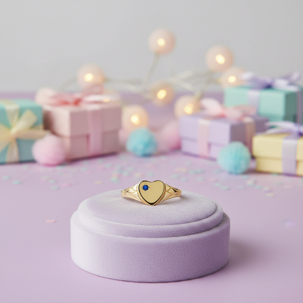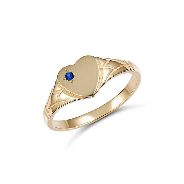 My Little Angel Signet Ring with Blue Stone in 9ct Yellow Gold