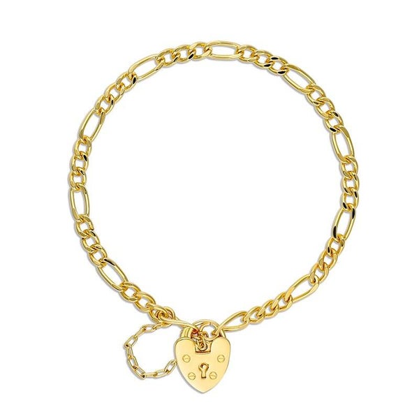 My Little Angel Figaro Bracelet With Heart Clasp Yellow Gold Plated