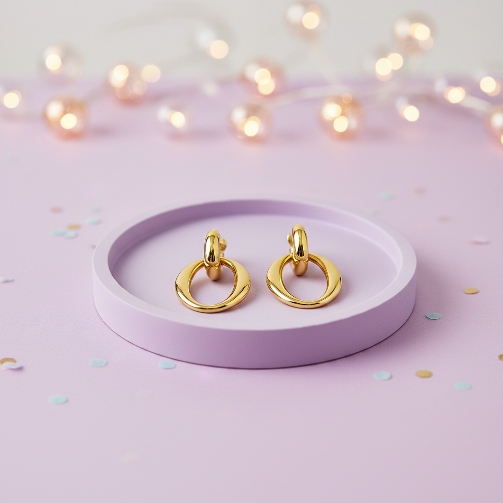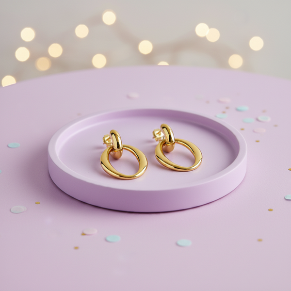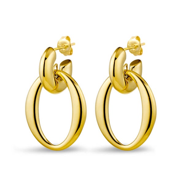 Seren Stainless Steel Waterproof 18K Gold Plated Oval Drop Hoops