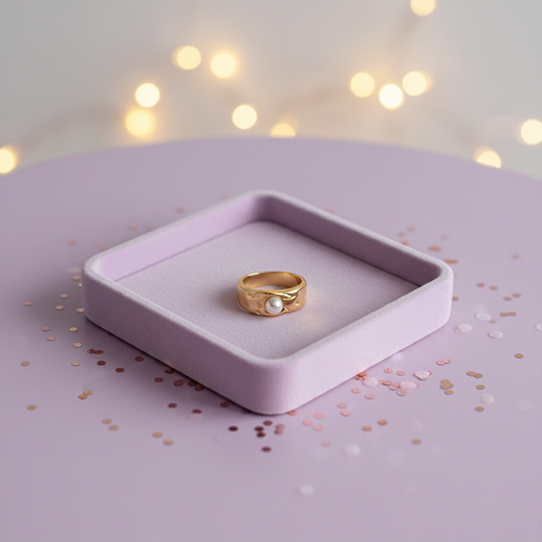 Seren Stainless Steel Waterproof 18K Gold Pearl Molten Ring